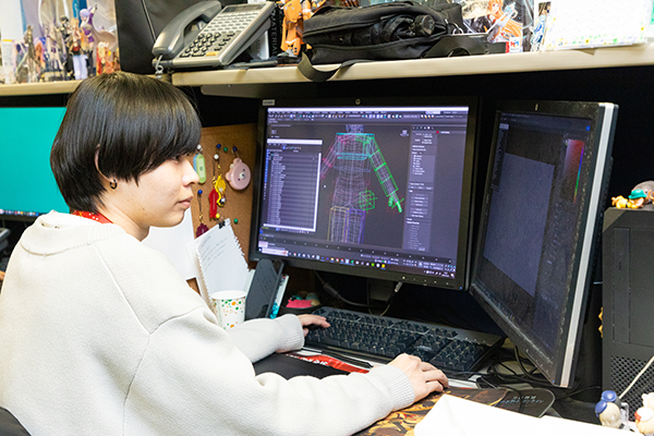 作成してもらった3Dモデルを動かした際に、美しい状態をできるだけ崩さないよう注意しながらコントローラーを仕込みます。さらに、実際に使用するCGアニメーターが動かしやすいよう工夫しながら制作することを心がけています。