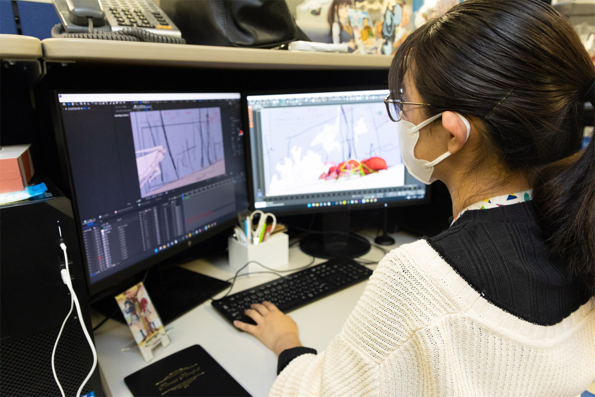自分の担当したカットが配信やテレビで放送されたときが、一番印象に残っています。完成した映像を見たときはとても達成感がありましたし、今後も頑張ろうというモチベーションにもつながりました。