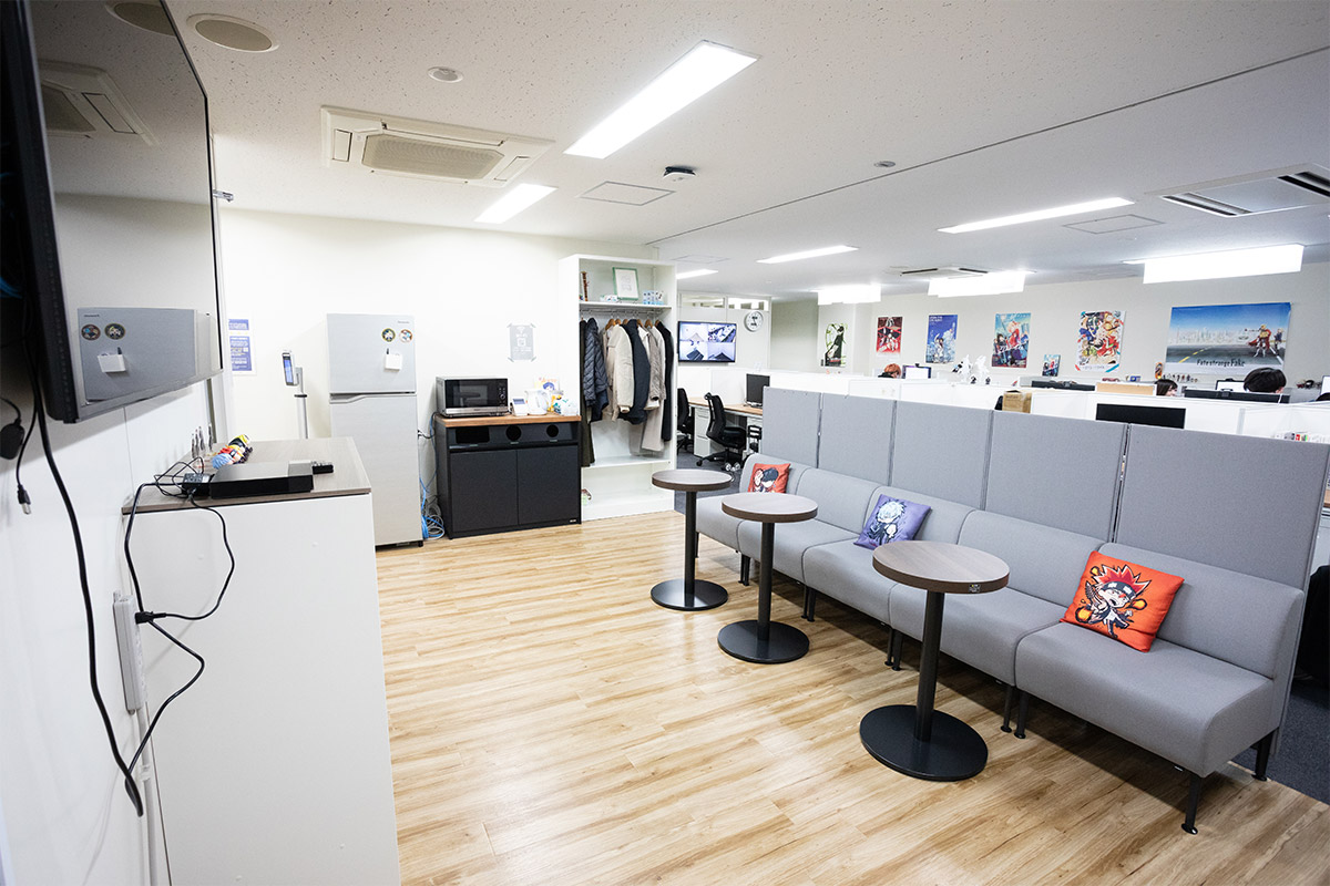 原画ルームは全体的に静かな方が多く、落ち着いた環境で作業ができます。指導役の方1人で現在5人の作業チェックをしていただいている状況です。