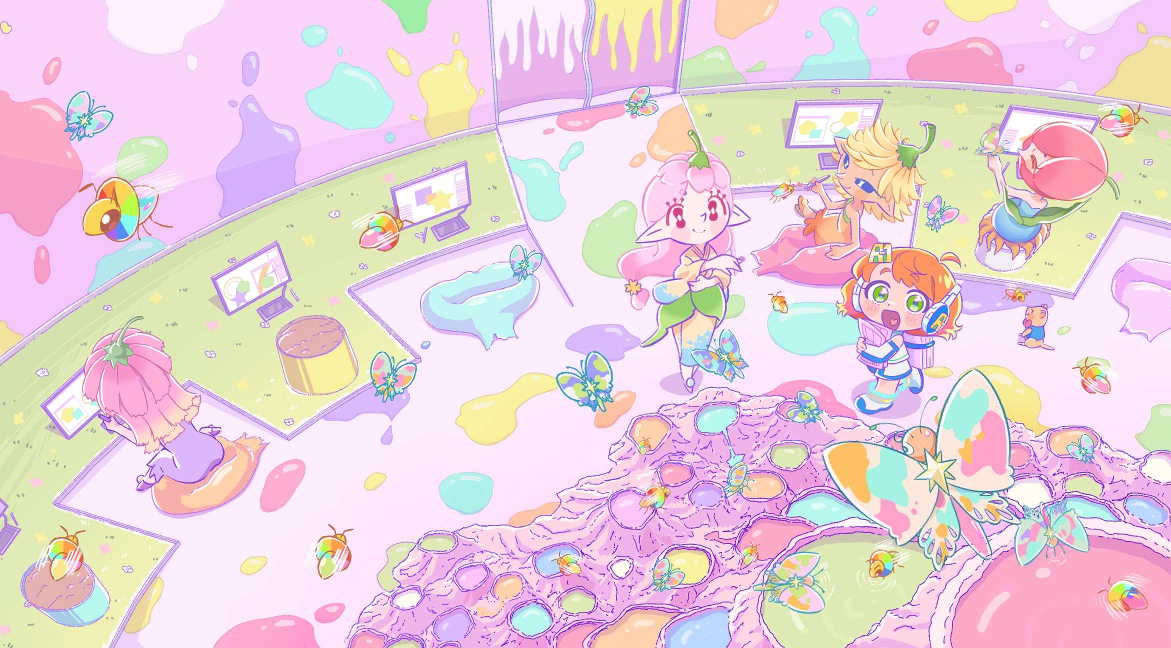 アニメーターが描いた動画を、主にRETAS STUDIO PaintManを使用して1枚1枚ペイントしていきます。